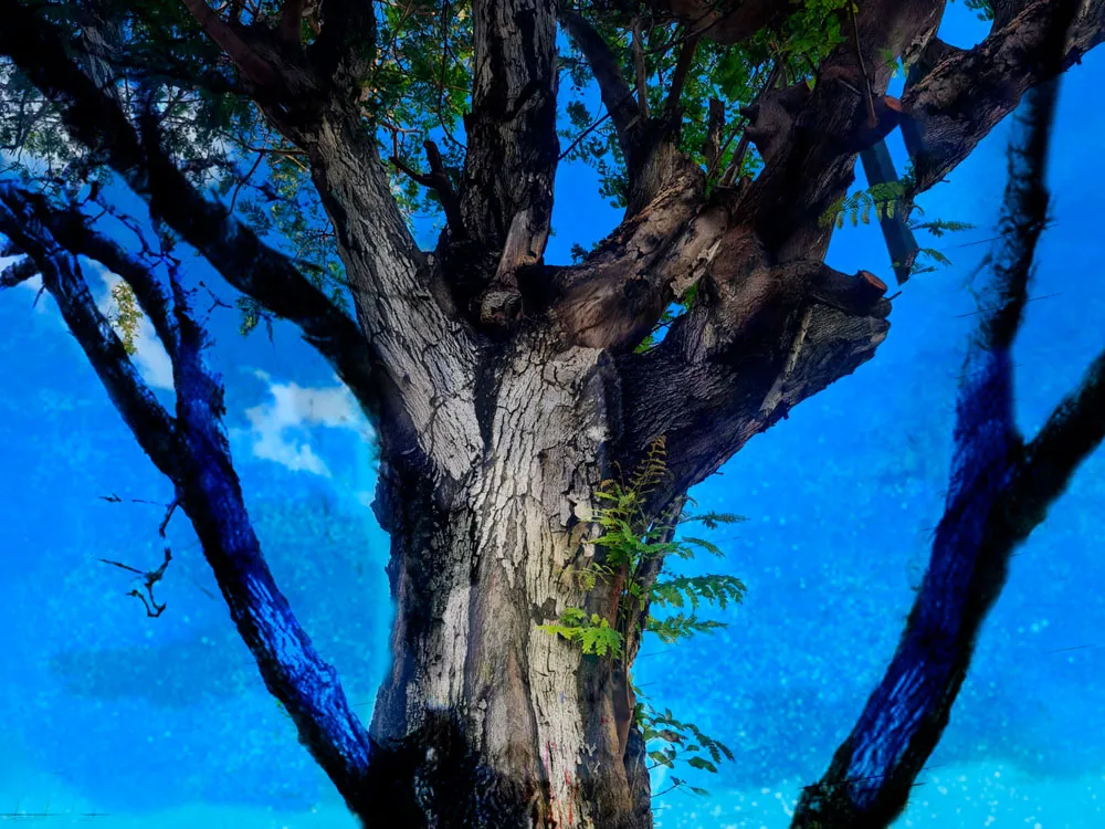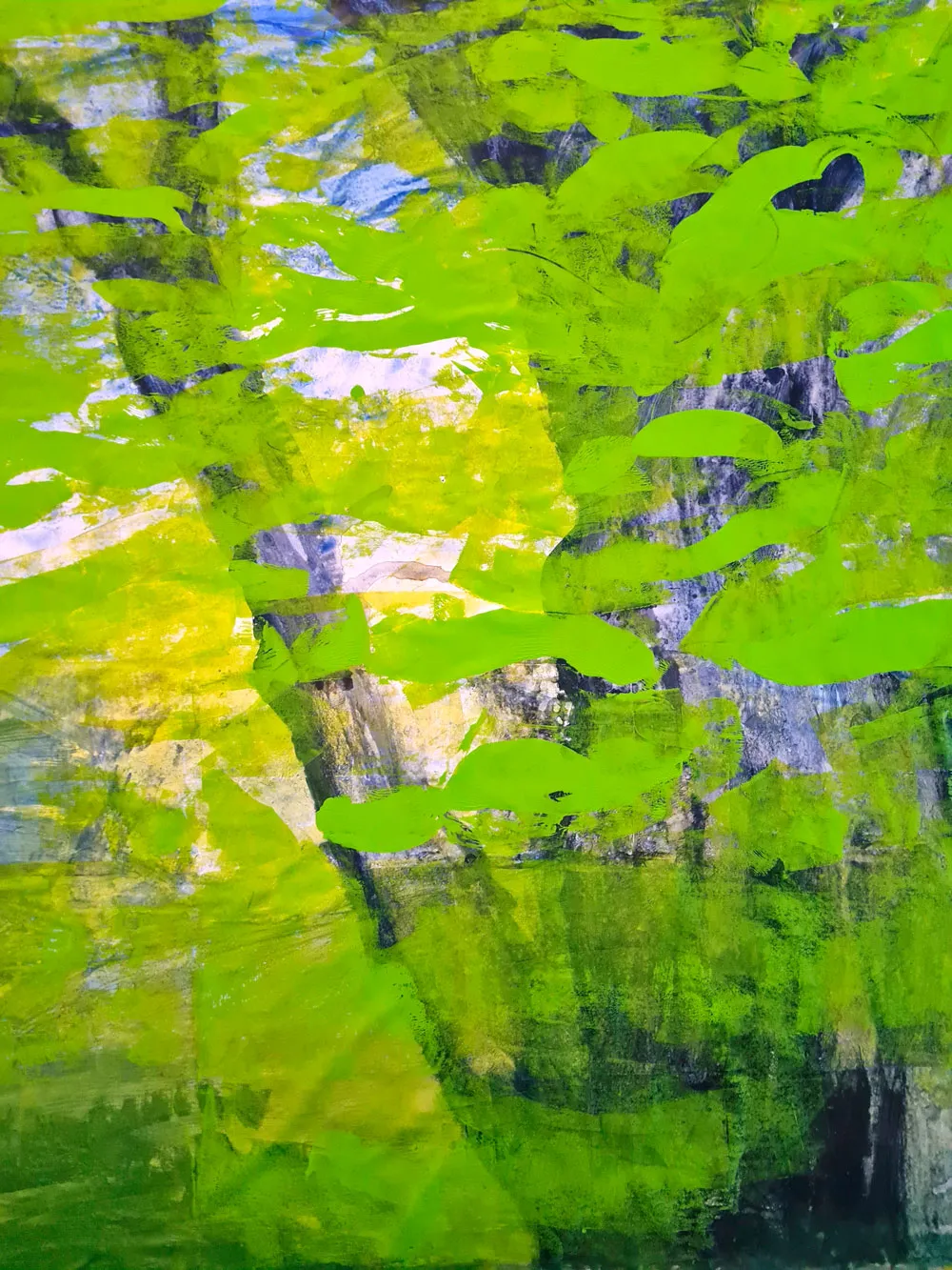 Faced with this gap between intention and result, the painting adopted its own logic. New opaque layers of acrylic began to partially cover the previous ones, generating a glazing effect that allowed earlier stages to be glimpsed. This superposition became a critical strategy: accepting the failure of literal copying in order to construct an autonomous image, where what is erased functions as a trace and the hidden as a latent presence.